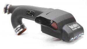 Ram-Air Intake Boosts Power Mileage ENGINES The Ram-Air intake system from Banks Power promises to boost mileage and power thanks to the filtered denser and cooler air it feeds into the engine The high-performance system has been available for gas and diesel-fueled truck and motor home engines for more than 30 years It’s now available for the Ford F-150 3 5L EcoBoost engine The large filter housing and the large filter itself are designed to be less restricting to airflow The housing replaces the OEM air filter housing to pull in cool outside air Gale Banks Banks Power notes that most competitive replacement air intake systems draw air from directly above the engine “We’ve tested our competitors’ systems in hot engine compartments surrounded by a reservoir of blistering air and the men were separated from the boys ” says Banks “In terms of temperature reductions 7 out of 9 aftermarket intakes we tested actually performed worse than stock ” The Ram-Air pulls in cooler outside air Cool air is denser with more oxygen for a better burn better fuel economy and better performance A flexible bellows between the air intake and the engine accommodates engine movement The dome-shaped filter not only facilitates that flow it also never has to be replaced The cotton gauze lets air flow through more easily than stock paper filters do The design eliminates sharp bends and choke points It’s easy to install and easy to maintain The filter should be serviced every 30 000 to 50 000 street miles or more often in heavy dust conditions An air filter restriction gauge is available for even more accurate maintenance A special Banks Ram Air Filter cleaning system must be used for cleaning and to re-oil Standard detergents solvents or high-pressure water can damage the filter “Cleaning the filter is easy ” says Gil Cormaci Banks Power “Simply spray the cleaner on let it soak in and spray it off with water Re-oil let it sit a while and then reinstall ” The Ford EcoBoost model is available direct from Banks for $348 30 as well as from auto parts suppliers The service kit including cleaner and oil for re-oiling retails for $17 50 Contact: FARM SHOW Followup Banks Power 546 Duggan Ave Azusa Calif 91702 ph 800 601-8072; www bankspower com
