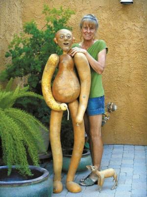 It’s challenging to create a 9-ft. tall sculpture that breaks down to fit in a car and is stable, she admits. While gourds will last centuries if kept dry and protected from the elements, they’ll break if they fall.