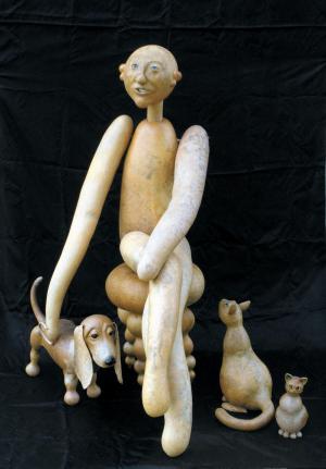 “I use a dowel to connect the arms to the torso on people. The dowel acts like an axle so the arms can move. The legs are usually rigid with an internal structure that you cannot see, which supports the sculpture. Sometimes weight is added to the legs to create the proper balance to allow the sculpture to stand,” she adds.