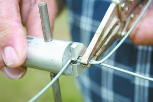 Using the Wire Splicer requires an overlap of about 6 in. of wire and a needle-nosed vice-grip to hold the wire tight during splicing. The tool makes a tightly wound splice that conducts electricity as well as unbroken wire, Sowers says. “The splice is also as strong, or stronger, than the original fence wire. It will never unravel.”