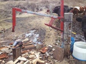 After reading the report in our last issue on a hand-powered “mystery wood splitter”, Jeremy Meinert sent us photos of a similar wood splitter that he built last fall and uses in front of his wood shed. He had never seen a video of any other similar wood splitter.