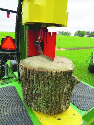 “The loading arm can easily pick up a 24-in. long, 24-in. dia. log,” says Hollmen. “I like to line up logs on the loading arm platform before I start splitting them so I can work faster.”