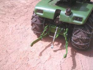 The Cat. I 3-pt. hitch is designed for Deere 120, 140 and 316, and 317 garden tractors. It comes with bolt-on quick-tach mounts and an integrated drawbar that are welded to a 3/8-in. thick flat steel plate, which bolts to a plate on back of the tractor. The top link attaches to a hydraulic-operated lift bar already on the tractor.