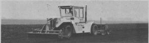 The Tillage Trac was developed by Krone at the request of one of the biggest farmers in Germany, Frederick Mathieson, who was concerned with compaction. The machine features an unusual "tricycle" wheel arrangement with two wheels close together in front and two spaced far apart at the rear so that no two wheels ever follow in the same track. All four wheels on the hydrostaticmachine are independently-driven and steered to reduce slippage and to keep the tires from digging into the field on turns. Although powerful, with a 178-hp. 6-cyl. Deutz engine, the Tillage Trac weighs about 6,000 lbs. less than a comparably-sized tractor.