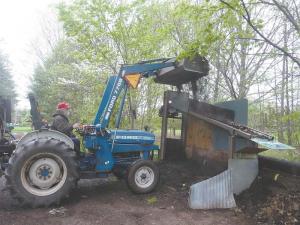 “It took me 45 min. to sift out a wheelbarrow full of compost and a lot of shoveling,” says Stremlo. “We need 2 or 3 tons of compost to build new garden beds. Now I do a loader bucket full in a few minutes.”