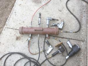 “This kind of manifold needs to be built extremely heavy-duty. I used a large piece of heavy-gauge pipe with ends welded in place and holes drilled in the sides for the pipe fittings. I added a handle to make it easy to carry and added a couple small legs to hold it off the ground. No more sharing and swearing, and no need to run separate air lines for each project.”