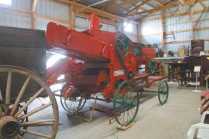 Everything is under cover and in working order, though he tries to keep pieces as original as possible. His oldest piece is an 1822 Conestoga wagon jack. A horse-drawn grain drill with original paint and parts was built 137 years ago.