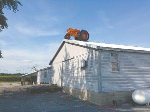 When people drive in his yard, a motion sensor turns on the headlights of a Minneapolis-Moline “R” parked on the roof of one of his barns. But, of all his ideas, the 64-year-old grain farmer appreciates the semi display the most.