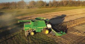 He Drills Cover Crops While Combining COMBINES Miscellaneous Max Pitt gets seed-to-soil contact planting cover crops with drill units mounted on a 9600 Deere combine The Graceland University agricultural professor is on his second-generation prototype It has worked well enough to apply for a patent on what he calls his Drill Combine The goal is a cost effective method of planting cover crops His concept is an alternative to broadcasting from a combine or making a separate pass with a tractor and drill requiring time and fuel “I figured we could use the combine to carry drill components and get better seed-to-soil contact ” explains Pitt “I hoped we could get a better stand with less seed ” Last November Pitt drilled rye at 30 and 50 lbs per acre rates using single coulters “Five months later we had between 600 000 and 800 000 plants per acre ” reports Pitt “This fall we are testing 25 and 30-lb rates of rye and also seeding about 6 acres to pennycress seed at about a 5 lbs per acre rate ” Pitt’s first Drill Combine used a Montag Mfg seed tank and metering system Its 30-cu ft tank was sufficient for about 50 acres drilling at this year’s lower rye rates The tank mounts on the front axle He had toolbars fabricated by local welder/fabricator Steve Rollins He used 4-in square 1/4-in steel tubing for a 15-ft bar mounted to the rear axle It carries 12 single disc coulters on 15-in spacing Six-ft toolbars were mounted to each end of the 30-ft soybean header They carry 6 coulters each “Steve used steel pipe for the front toolbars that rotate inside sleeves attached to the header ” says Pitt “This required a modified coulter mount but it allowed me to raise and lower the drill units separate from the soybean header This would be important if harvesting in wet conditions ” Each pair of coulters was fed by a 1 1/2-in flexible tube carrying seed from the Montag unit The coulters loosened the soil and mixed the seed with it “I used old Deere drill openers because they were the lowest cost coulters I could find ” says Pitt “They created enough disruption in the soil that the seeds blowing in created seed-to-soil contact with the residue spreader creating a degree of mulch over them ” On his latest Drill Combine prototype Pitt went with double disc coulters from Sunco Farm Equipment He expected and has seen a much-improved seedbed “I’ve been very pleased with how they work ” he says “You don’t want to drill too deeply but better on the soil than on top of a leaf or other residue as with simple broadcast systems ” Pitt stayed with the Montag system He notes that Montag has a long history of precision metering and placement of fertilizer Another change made this year was to adapt the Drill Combine to corn harvest Instead of a dual rear/front system Pitt is using 18 coulters on the rear toolbar to match his 8-row harvest swath He lengthened the toolbar by adding 3-ft hinged wings to each end He moved 2 sets of double disc coulters from the front toolbar to the back and added 2 more This covers the 8 rows with one coulter to either side of them With the 4 sets of coulters on the soybean header he still covers its 30-ft width Pitt notes that his experimental units would not have been possible without the support of the Iowa Dept of Ag Montag Equipment and Sunco Farm Equipment Contact: FARM SHOW Followup Max Pitt Graceland University 1 University Place Lamoni Iowa 50140 ph 641 442-5468; maxpitt@graceland edu