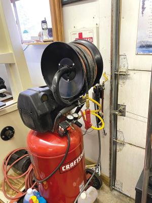 Hose Reel Bolted On Top Of Air Compressor