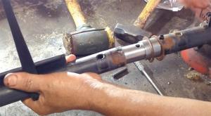 Combine reel pipes worn thin at their bearings are easy to fix with a repair kit from Bryant Combine Parts. Instead of replacing the pipe, just cut out the worn section and splice in a new one. The kit comes with everything needed except for a tool to cut the pipe.