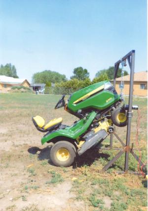 “I finally came up with a lift frame that works great and doesn’t have any obstacles underneath so it’s easy to reach the mower deck.