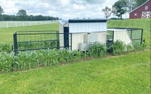 The Nano shares basic design features of Smith’s larger prototypes, including front and rear pens and the inverted V roof for water collection. Pens and barns are each 8 by 8 ft. in size with 4 by 4 interiors.