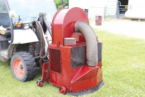 The vacuum/blower fits well with the Cone Splitter that Van Dusartz began manufacturing more than 15 years ago. It breaks up large tree stumps that are too big for chip grinders (FARM SHOW Vol. 31, No. 5). Over the years, several different sized models have been added, from mini-skid versions to an excavator model.