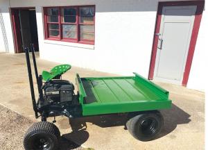 “The lawn tractors have a bigger engine than the cart needs,” says Evans. “The engine, battery and gas tank all take up space. A 5 to 7-hp. engine from a push mower is big enough, is compact and uses very little fuel.”