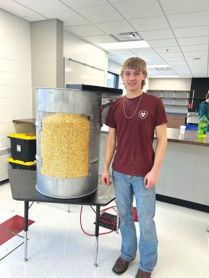 In November 2022, Gahler worked with his father to build a scale model of his idea. “My design has changed a lot since I was in 7th grade; there’s been a lot of trial and error,” he says. “The final design focuses mostly on unloading your bin and stirring it during the off-season to get clumps off of the bin’s walls. When my dad and I finally flipped the model’s switch, it did more than I expected it to!”