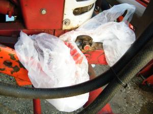Gary Swensen, Yankton, S. Dak.: “Whenever I have to do spot painting on equipment, instead of using masking tape I just use old plastic grocery bags. It’s easy to tuck the bags into tight places, and they can be left on indefinitely without leaving any sticky residue like with tape. And after the bags dry out they can be reused. The photo shows how we recently used plastic bags while painting the mounting brackets on our front-end loader.”