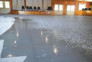 Miller stresses that a key element of laying down a polyaspartic coating is properly preparing the concrete floor. “We grind the concrete surface and vacuum it to open up the pores of the concrete,” he says. “This allows the polyurea base coat to soak into the pores,” says Miller.