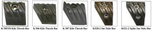 K 506 bar is an all purpose bar with extended rasp ramp which begins rasping sooner , allowing more crop to rub on itself. These deeper & wider rasps, on each bar, are aggressive yet gentle on the crop, allowing the material to be managed thru the threshing/separating system. K507 extended rasp spiked bar (with or without carbide) is used, as needed, when cutting rice, corn & beans.