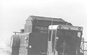 "Visibility of grain inside the tank is no problem because the tanks on most of today's combines have perforated screen windows. However, rain can come in through these windows so we're now developing bolt-on sheet metal æawnings' that will keep rain out."