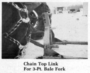 Duffield used a 1/2-in. chain about 2 1/2-ft. long. He hooked it to the tractor and fork in place of the top link, using the same pin holes.