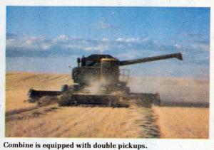 To pick up the two windrows laid down by the 67 ft. swather, the Honeys equipped their John Deere combine with double pickups. "On our best days, we combined 340 acres of durum wheat which yielded 8,000 bushels," says Gregory. "We only put 120 hours on the combine to harvest 2,600 acres of crop."