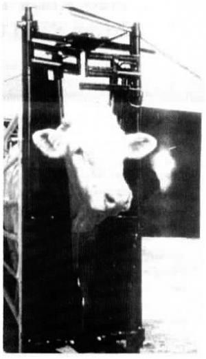 Designed for one person operation, the Unistock can be used on most makes of chutes. "It's designed to eliminate the panic situation when an animal goes down with its head still held in the yoke," the manufacturer points out. "Pressure is automatically released around the animal's throat and neck, greatly reducing the risk of choking." The new-style Unistock can handle cattle of all sizes without alteration and can be manually operated to capture problem animals, such as those with long horns, or mature bulls with necks wider than their heads.