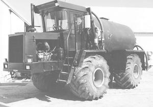 The chassis used to be a Big A 3500 fertilizer spreader. It has 4-WD and 4-wheel steer, with big 67 by 34-in. tires. The engine is a turbo-charged 555 Cummins diesel with 230 hp.