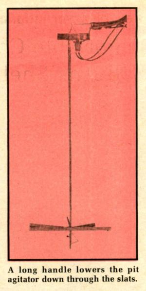 You simply take out a section of slatted flooring and set the portable pump down into the pit. "In most cases, one setting is all that's needed in a pit 10 by 70 by 8 ft. deep for the agitator to combine the sediment and liquid into an easy-to-remove slurry of uniform consistency," explains a company spokesman. "The new Model 314 agitator's powerful mixing action cuts through 3 to 4 ft. of buildup on the bottom of the pit. Prior to draining, one to two hours of agitation with the agitator will provide uniform consistency fertilizer from the first load to the last."
