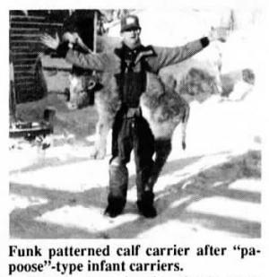 For more information, contact: FARM SHOW Followup, Gerald Funk, "Moo-Glee Calf Carrier", Box 475, Dinsmore, Sask. S0L 0T0 Canada (ph 306 846-4833).