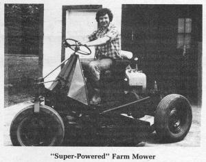 Super Powered Farm Mower HAY & FORAGE HARVESTING Mowers (38) 6-4-9 I built this power mower and have used it now for five years. There are often areas on my farm where grass grows 3 or 4 ft. tall before it gets cut and most mowers are greatly under-powered for such material. A drawn tractor mower is often too much trouble to hitch up so some cutting is neglected.