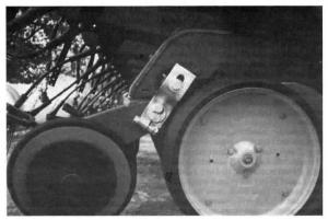 "Holding closing wheels in alignment on our Deere Max-Emerge II planter was a problem for us until we came up with this modification," says Randy Lohrentz, inventor and manufacturer of a new add-on kit for Deere planters that locks closing wheels in place.