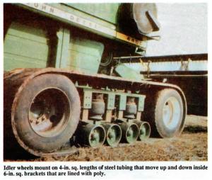 "I cut off the lugs on the belts to make it easier to turn, but turning is still a problem because the tracks are so long that they scoop a lot of dirt when turning. However, this fall I plan to put more air pressure in the springs to try to solve the problem.