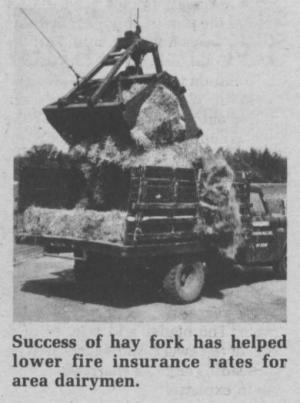 "We can now save most barns with fires in the hay mow. That means the farmer can move back in ù sometimes the very next day ù and milk," says Michalek, noting that the success of the hay fork has actually resulted in lower insurance rates for dairymen in the area. In two years of use, the fork has been used for 14 fires. In all cases the lower barn has been saved. The procedure by the fire department is simply to get the initial fire under control with water and then remove the bales as quickly as possible while continuing to put out fire that erupts.