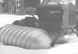 "The system was first built in 1923 and was called the æFordson Snow Motor Con-version,'" says Lloyd Harkin, a Silver Star, Mont., collector of mining equipment. " The tanks were about 3-ft. in dia. and 7-ft. long. They were attached in front with a yoke in-stead of the regular axle and were chain driven from a gearbox that bolted on behind the ring and pinion gear. One screw turned clockwise and the other turned counter clockwise to propel it forward. If they'd both turned the same way, the tractor would simply have turned circles."