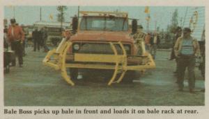 The Bale Boss, with a 10 by 21 ft. carrier, sells for $8,500. Dencel Simon, Mayville, N. Dak., distributor, forsees neighboring farmers going together to put a Bale Boss on an older truck, then sharing use of the rig.