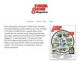 Each subscription will receive 2 FREE books. 96-page Articulated Marvels, will be mailed to you. Also included, is The Best of FARM SHOW, a special edition book (mailed with the Jan/Feb issue) showcasing the best new ideas, products and inventions from FARM SHOW Magazine. 1-Year subscription = 6 issues for ONLY $28.95! (mailed printed copies) That's 31% OFF the Single-Issue Price!