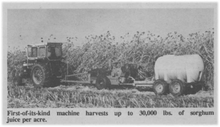 You've never seen a machine like this in-field sweet sorghum juice harvester that squeezes as much as 30,000 lbs. of juice out of an acre of sorghum right in the field for use as molasses, to make alcohol, or to sell "straight" for various industrial purposes.