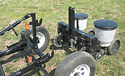 He pairs the caddies with commercially manufactured Yetter 2 and 4-row no-till planters and with a 15-ft. boom sprayer that he designed. With different seed plates, the planter can plant a variety of crops from milo and sunflowers to vegetable garden seeds such as peas, beans and sweet corn. The small sprayer also works well for lawn service businesses.