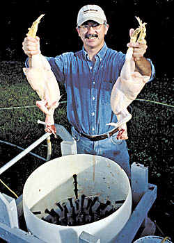 "A plucker is a necessity, but the scalder is really a luxury," says Kimball. "With my book, you can start out by building a very inexpensive scalder using an old water heater. The next chapter tells how to add electronic controls, and a later one tells how to make the automatic dunker."