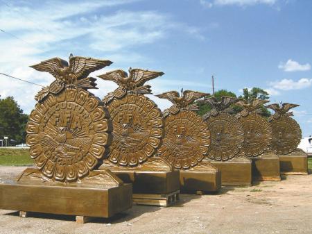 Each handmade emblem has the FFA motto on the back and a place for a bronze dedication plate. A removable eyebolt allows the emblem to be lifted up and set it in place.