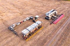 The carrier reduces ground compaction while powering what the company says is the largest combine harvester ever to take the field.