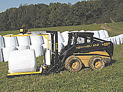 "As far as I know it's the first skid steer-mounted bale wrapper on the market," says Clapper. "A lot of farmers use skid loaders to move bales to the edge of the field where another machine wraps them. Now you can move them and wrap them at the same time. By the time you get to the edge of the field, the bale will be already wrapped. It takes only about two minutes to hook up the adapter plate."