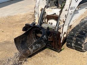 Hernke uses his shop-built spade on a 300 Bobcat. He says the 25-in. rim is just the right size for digging out small stumps and making holes to plant small trees he can retrieve from their woods. The scoop can dig a nice round 25-in. hole about 24 to 28 in. deep. He uses hydraulic down pressure to force the spade into the ground about 20 or more inches on one side of a circle, lifts it out, then does the same on the opposite side and lifts the dirt out.