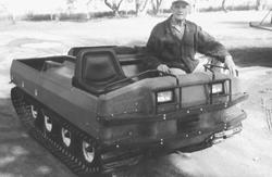Martin Guenther's homemade hunting cart has gotten hung up, but not for long. Using a built-in winch, he has quickly pulled free. The 8 1/2-ft. long, 5-ft. wide, all steel body handle just about anything and go anywhere, thanks to its home-made tracks.