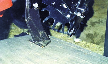 The fertilizer knife, which is still in the prototype stage, was introduced at the recent Farm Progress Show near Windfall, Ind. It's designed to mount between Martin row cleaners and consists of a shank that bolts onto the Martin row cleaner mounting brackets. A 5-in. wide sweep welds to the bottom of the shank. A fertilizer tube runs along the back side of the shank down to the sweep where the tube splits and bends outward to deliver fertilizer directly behind the point. The fertilizer is placed 2 in. to each side of the seed furrow.